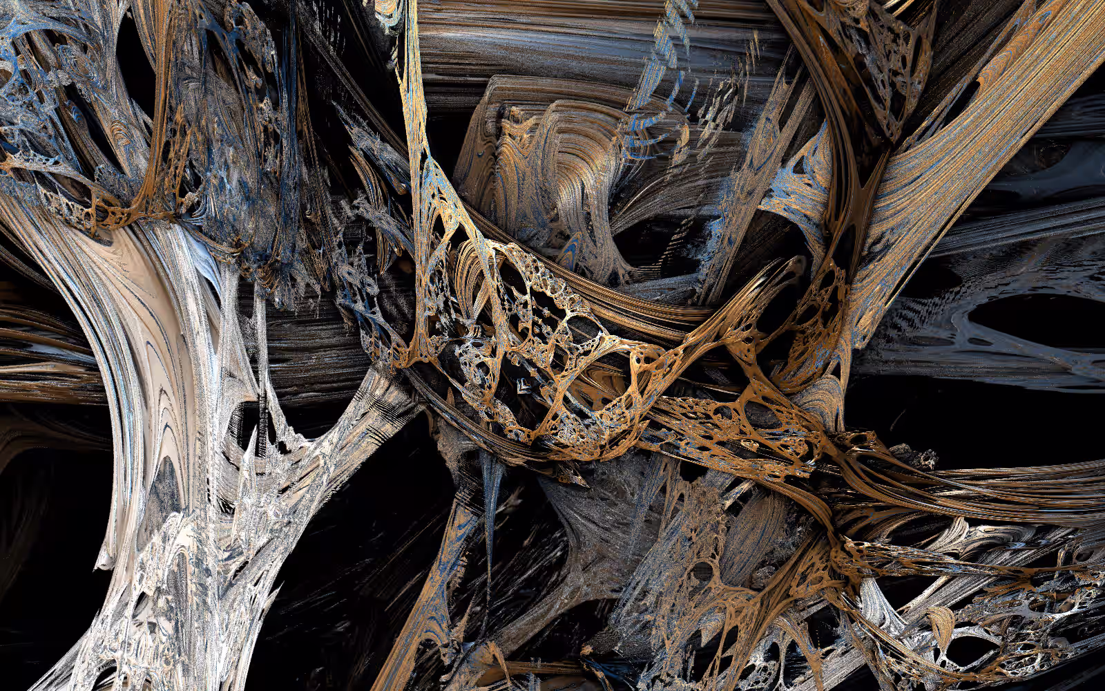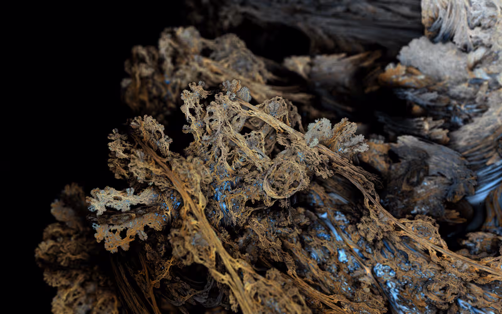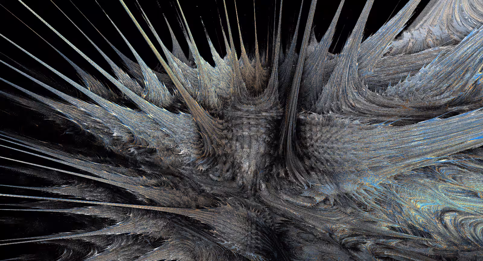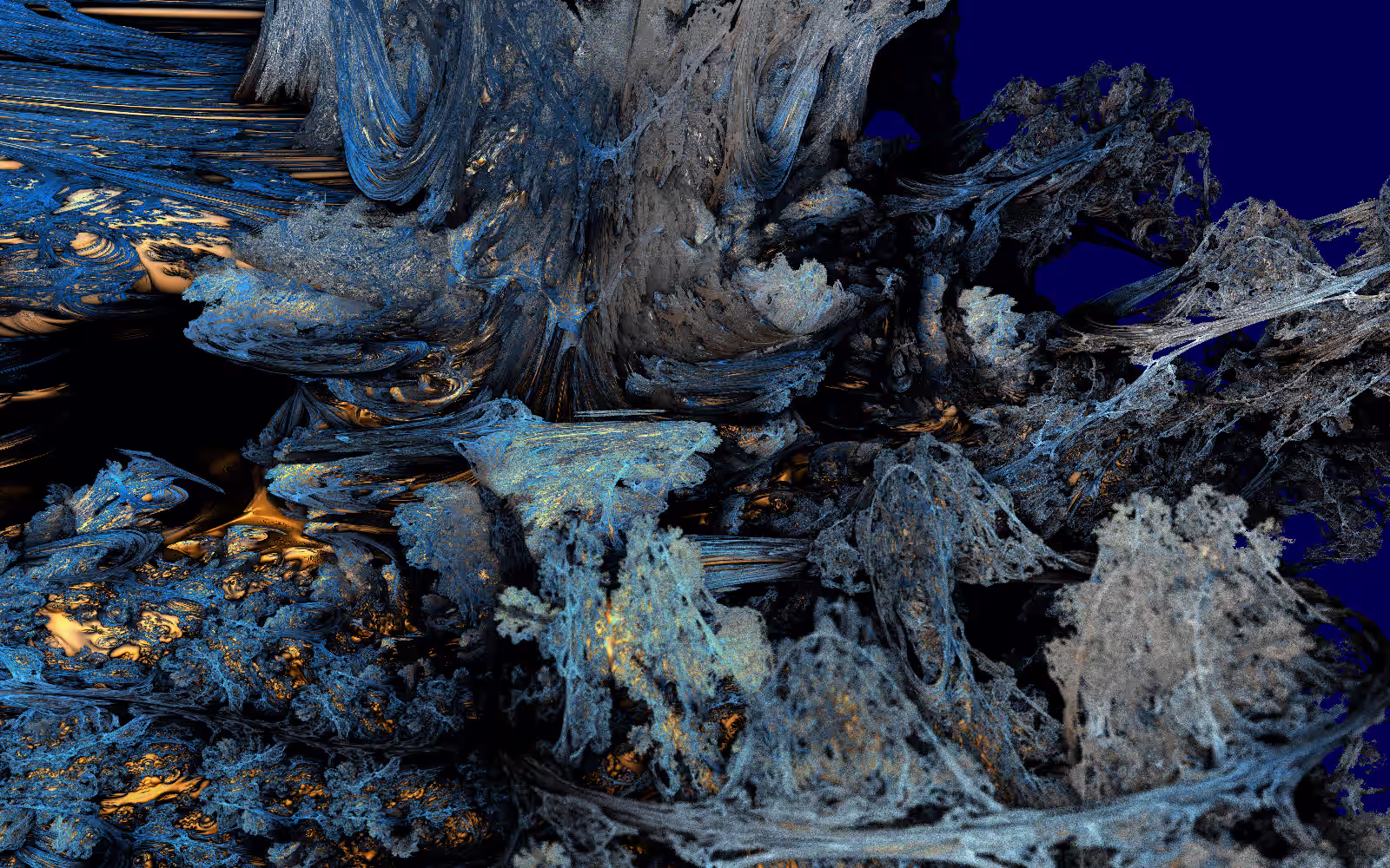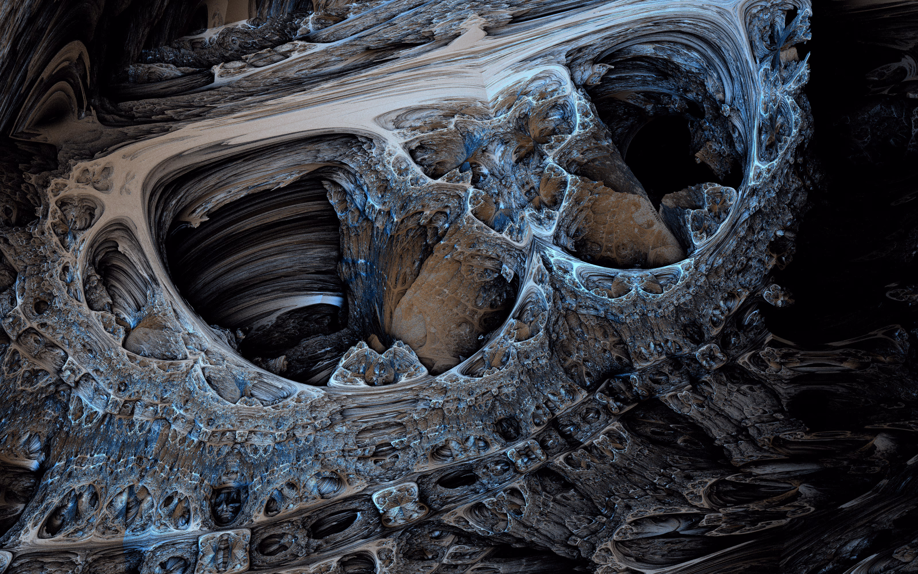 I wrote a custom GPU-based program to render the images in tiles, with multiple passes for supersampling. It has a virtual camera with a lens and a focal length, which I've adjusted so that the most interesting parts are in focus. Without a depth of field, the details are often difficult to see against a background of infinitely many more self-similar details. The focus gives objects a sense of depth when the background is decoratively blurred and the focal point becomes highlighted. The camera lens's diameter also adds a reference scale to the image. Without it, the fractal would look identical at all scales!