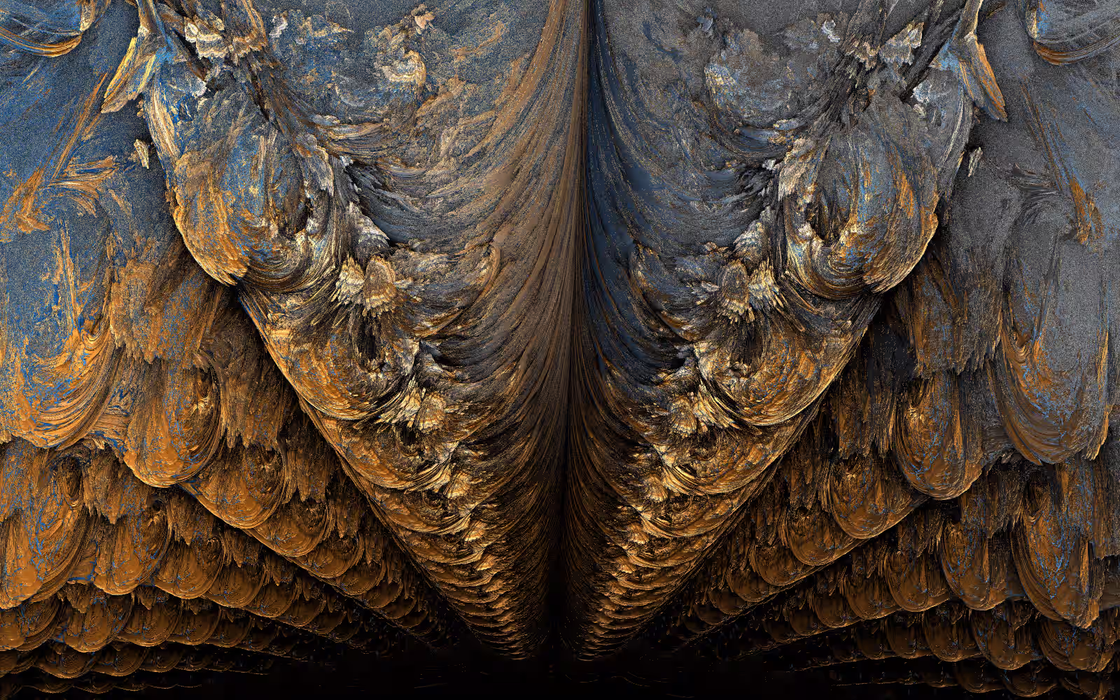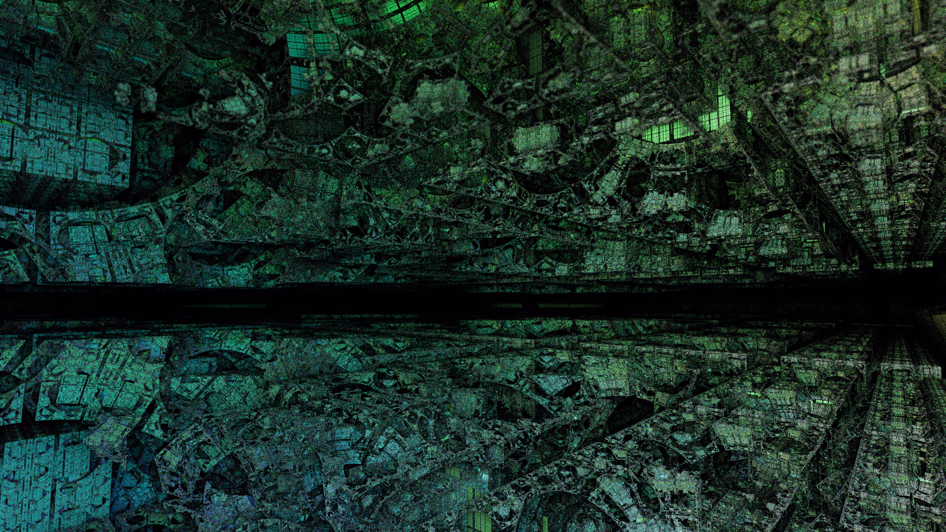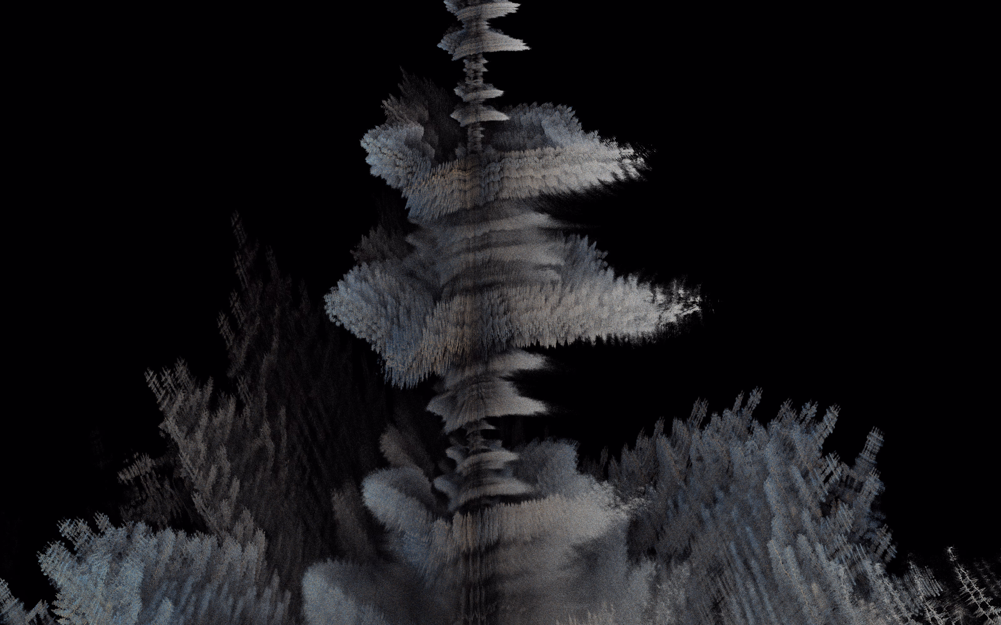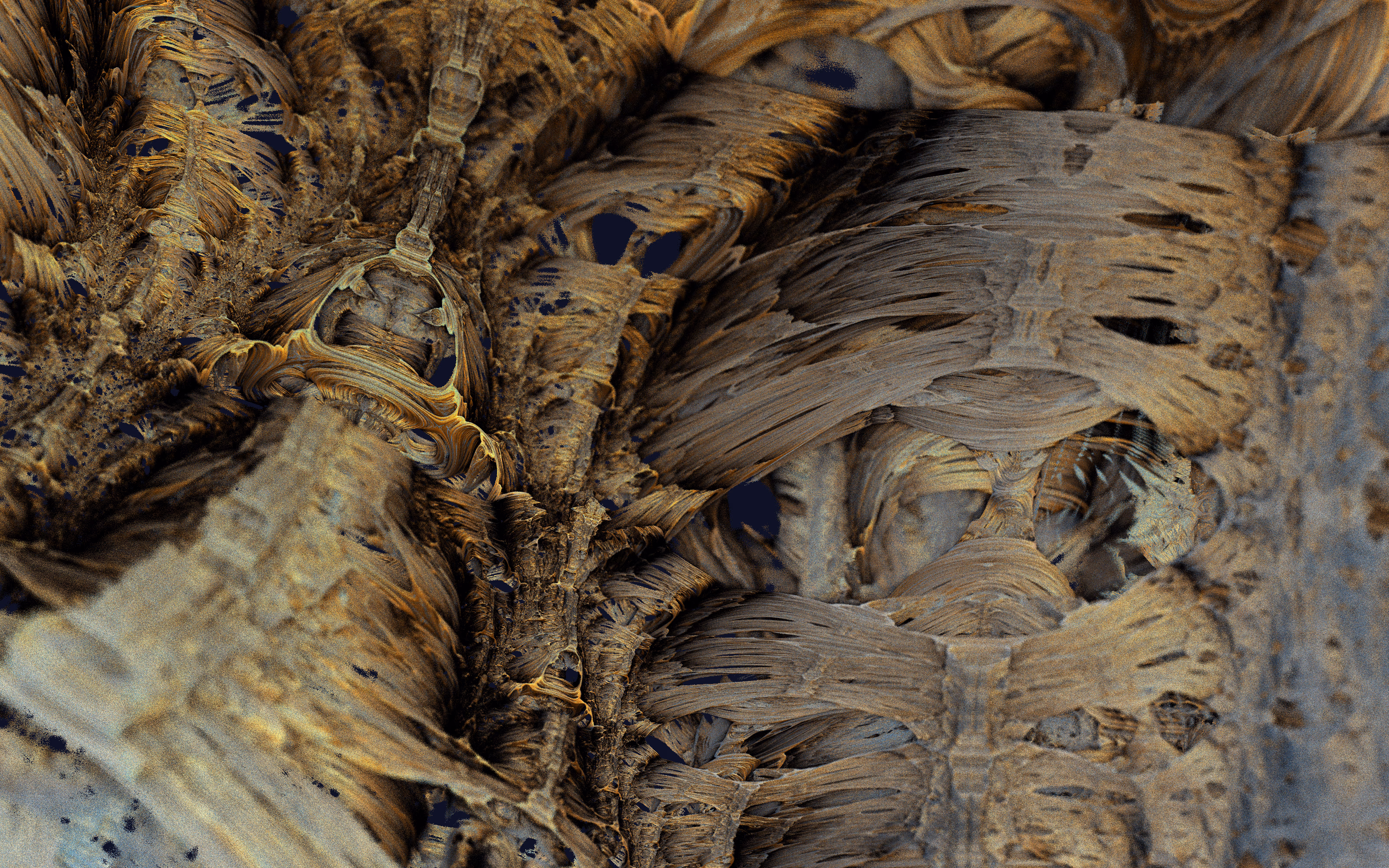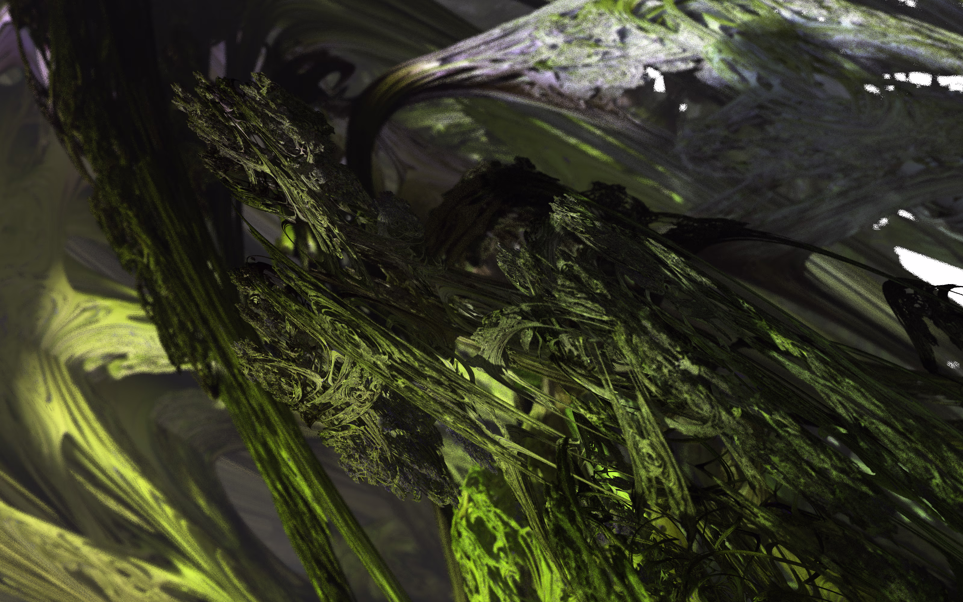 I wrote a custom GPU-based program to render the images in tiles, with multiple passes for supersampling. It has a virtual camera with a lens and a focal length, which I've adjusted so that the most interesting parts are in focus. Without a depth of field, the details are often difficult to see against a background of infinitely many more self-similar details. The focus gives objects a sense of depth when the background is decoratively blurred and the focal point becomes highlighted. The camera lens's diameter also adds a reference scale to the image. Without it, the fractal would look identical at all scales!