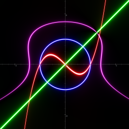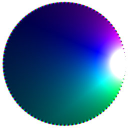 This tool graphs a function f(z) on the complex plane. The color hue represents the angle, and the brightness represents the magnitude of the output value. Enable level curves to graph only the fractional part of the magnitude, which produces sharp curved lines at every integer increment. Use the output scale to multiply by a factor if you need to bring the colors or curves into a more interesting range for the function. You can also copy a URL of your graph to embed on other websites in an <iframe> element.