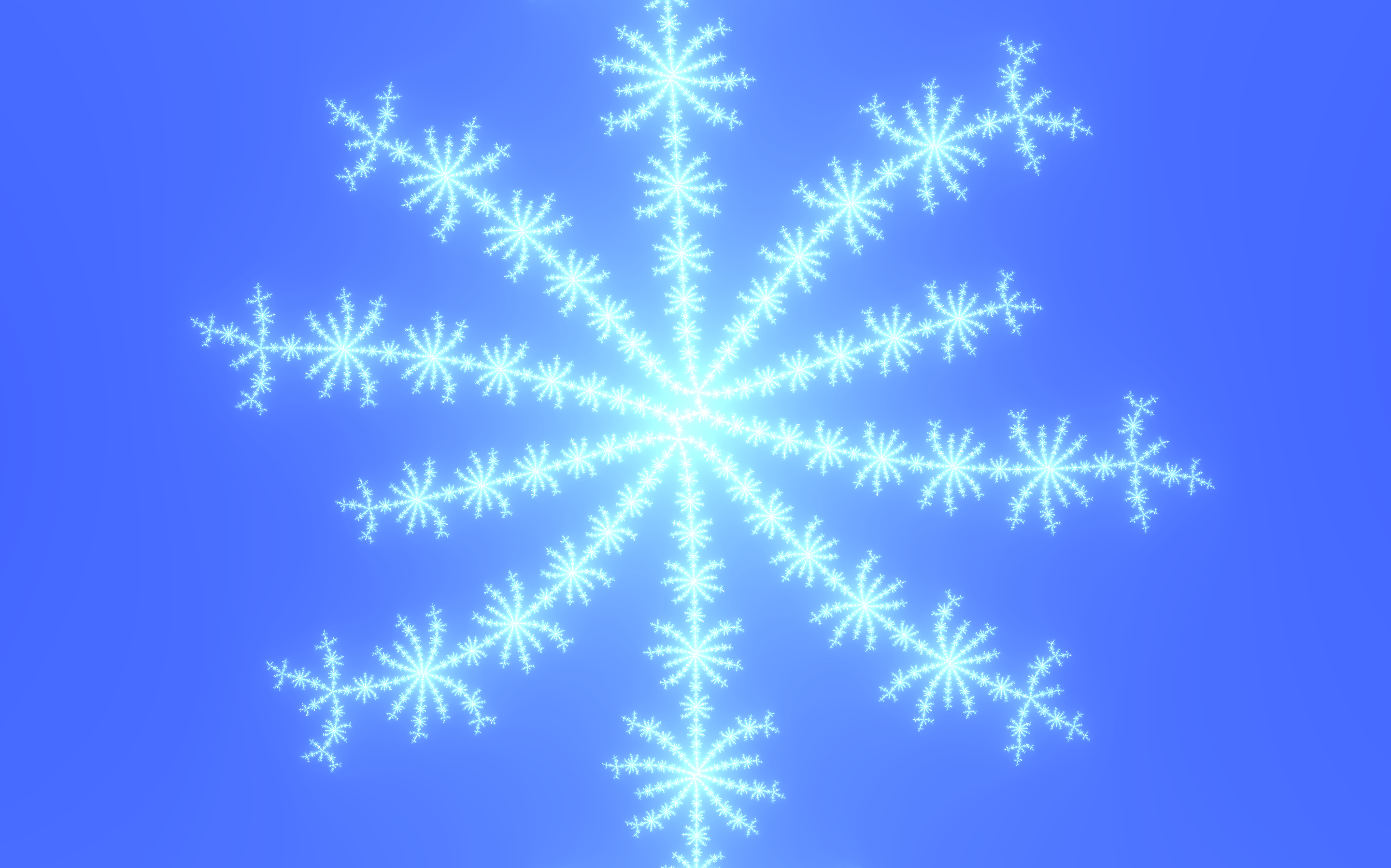 These icy images are from the Mandelbrot set, at the bottom-left corner (near -0.4 - 0.64i).